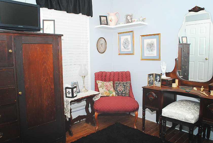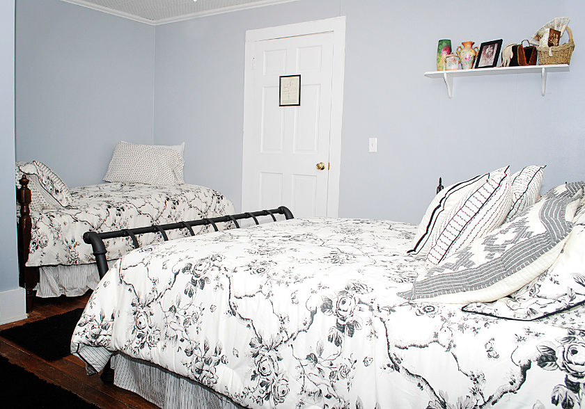 This room is named after our parents' families. There are a lot of family pictures and collectibles throughout the room that gives it a very homey feel. The queen size iron sleigh bed along with a twin size bed makes this room just right for three guests. There is a private bath with a walk-in shower. Convenient electrical outlets for charging devices.